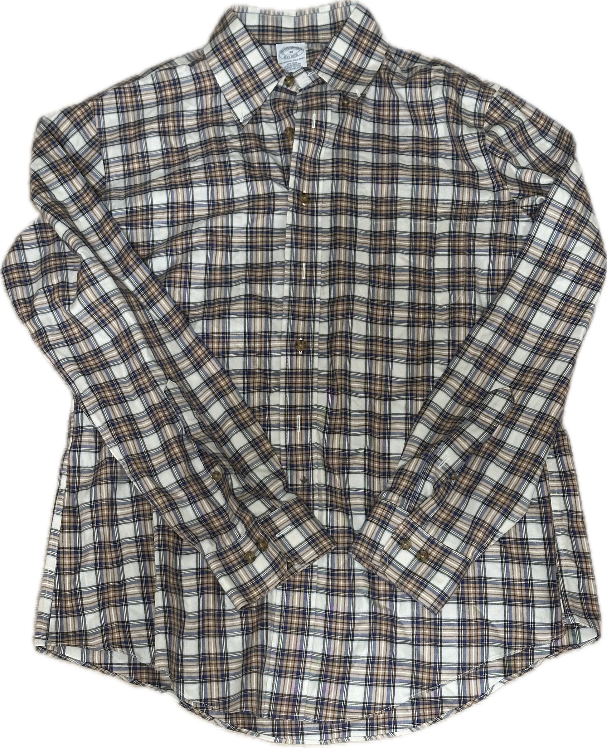 NEW GIRL: Schmidt's BROOKS BROTHERS Blue Yellow and Cream Plaid Button Long Sleeve Shirt (M)