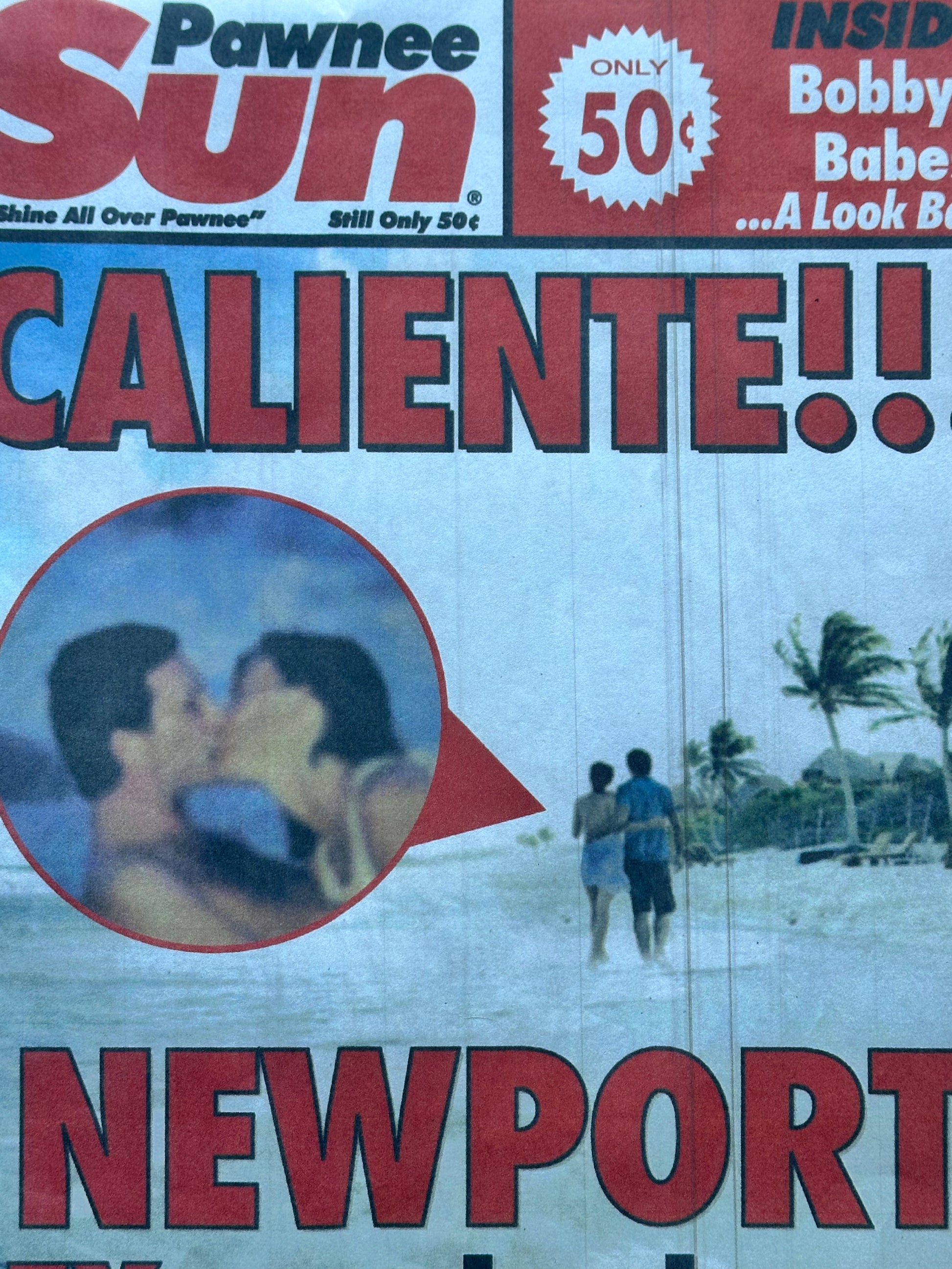 PARKS AND RECREATION: Leslie Knope's Pawnee Sun Newspaper front and back page Prop