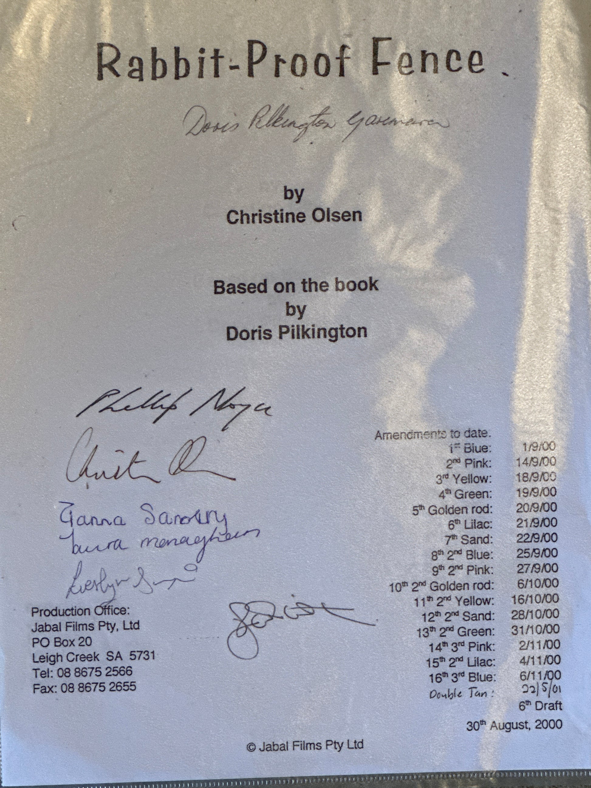 Rabbit-Proof Fence MOVIE: Director & Cast Signed Script from The MIRAMAX Archive