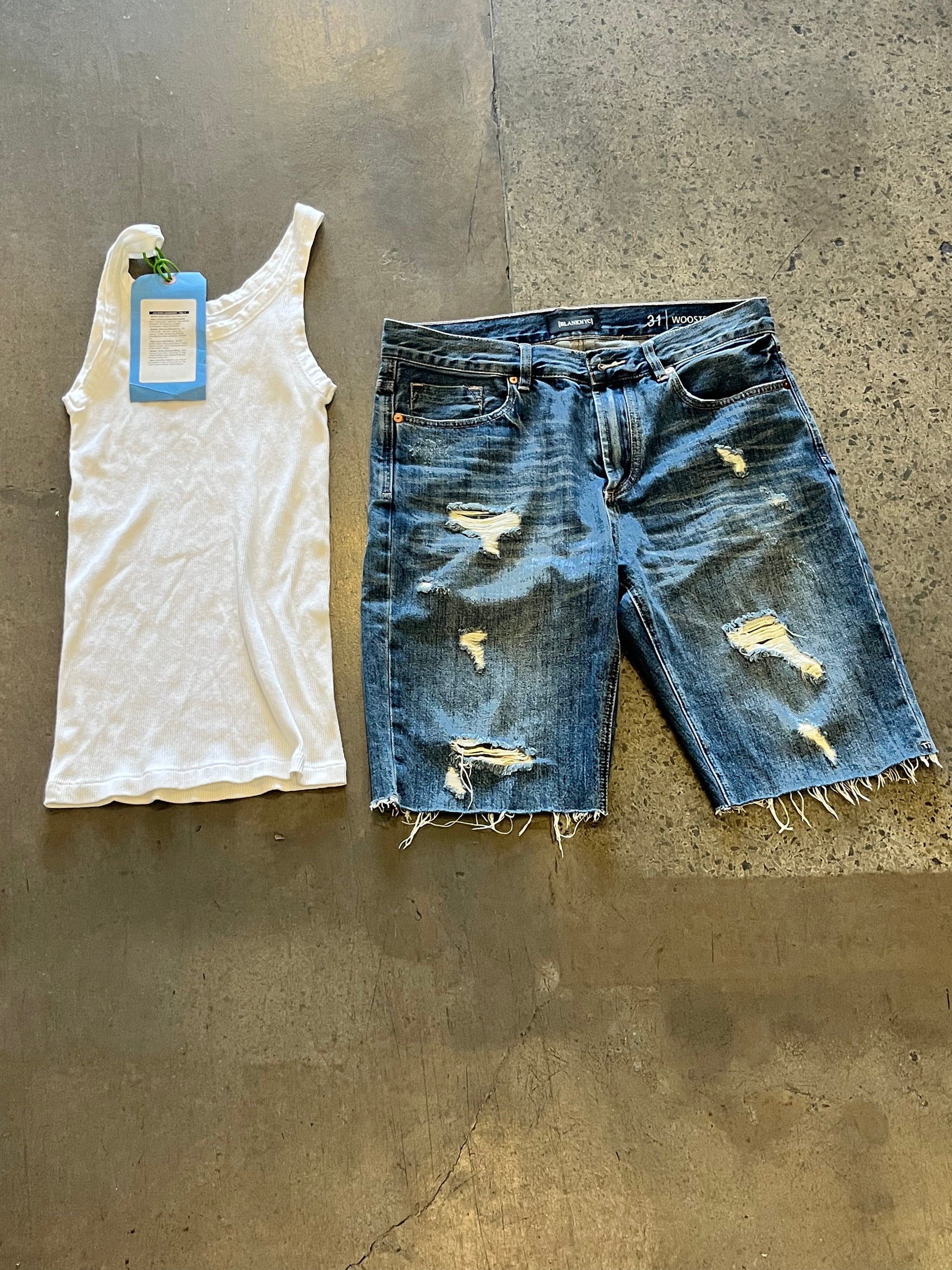 Silicon Valley: Russ Hanneman's White Tank Top and BLANKNYC Denim Jean Shorts from "RussFest"