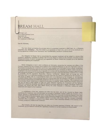 SILICON VALLEY: Bream Hall Investment Inquiry for Milk/Toast