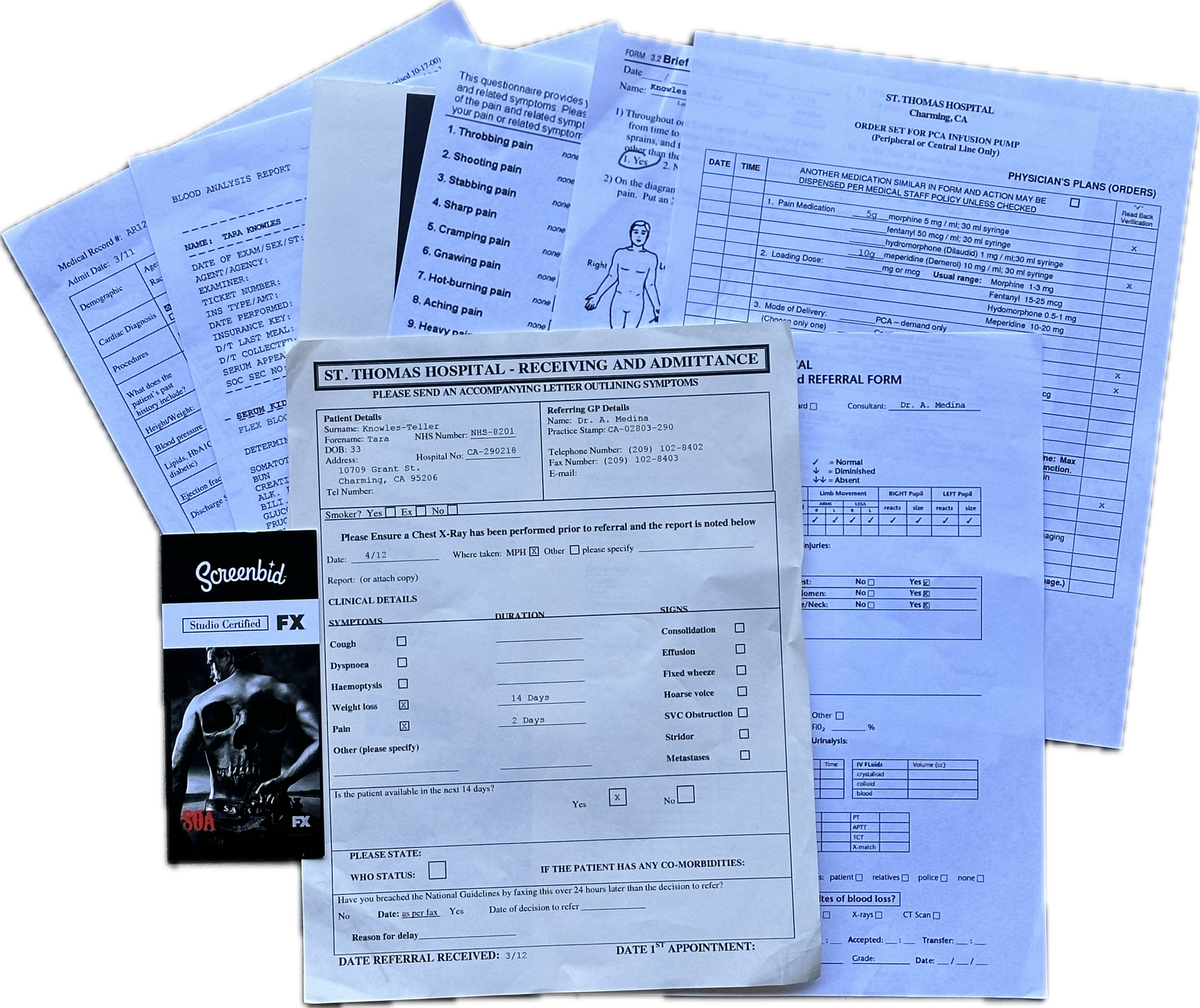 SONS OF ANARCHY: Tara Knowles HERO Hospital Admittance Paperwork and File